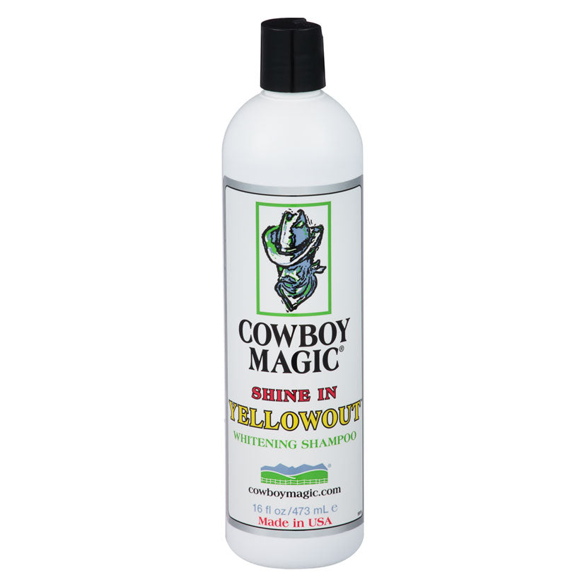 Paint. Benefits: There are benefits for both horse and human. SHINE IN YELLOWOUT takes yellow stains out of hair and gives dull hair of every color a more brilliant sheen. It leaves hair silky, shiny and smelling good.