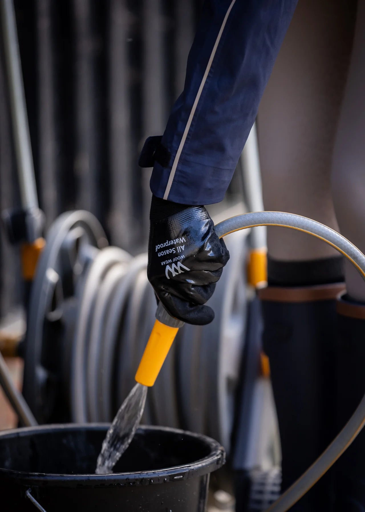 The All Season Waterproof Yard Glove is the perfect year-round glove for all types of work. Made with a durable nitrile coating, the glove is waterproof and designed to maintain a strong grip in both wet and dry conditions. The nitrile material ensures superior protection against water, oils, and dirt, while offering flexibility and comfort. This glove is perfect for equestrians who need a dependable, all-weather glove for daily tasks in the stable or out in the field.